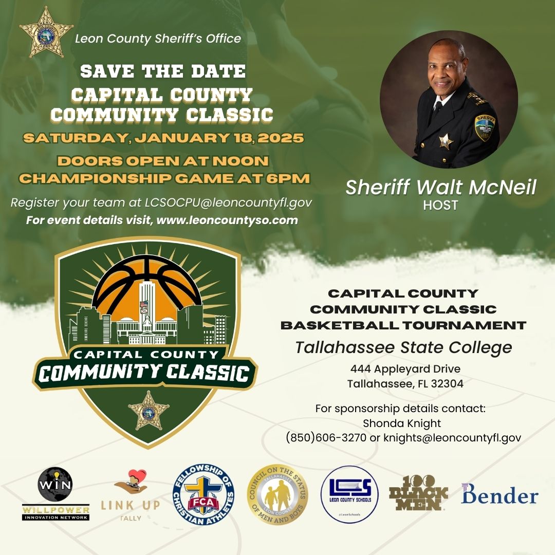 Leon County Sheriff’s Office and local community partners are joining forces for the inaugural Capital County Community Classic - a basketball tournament for youth and young adults!