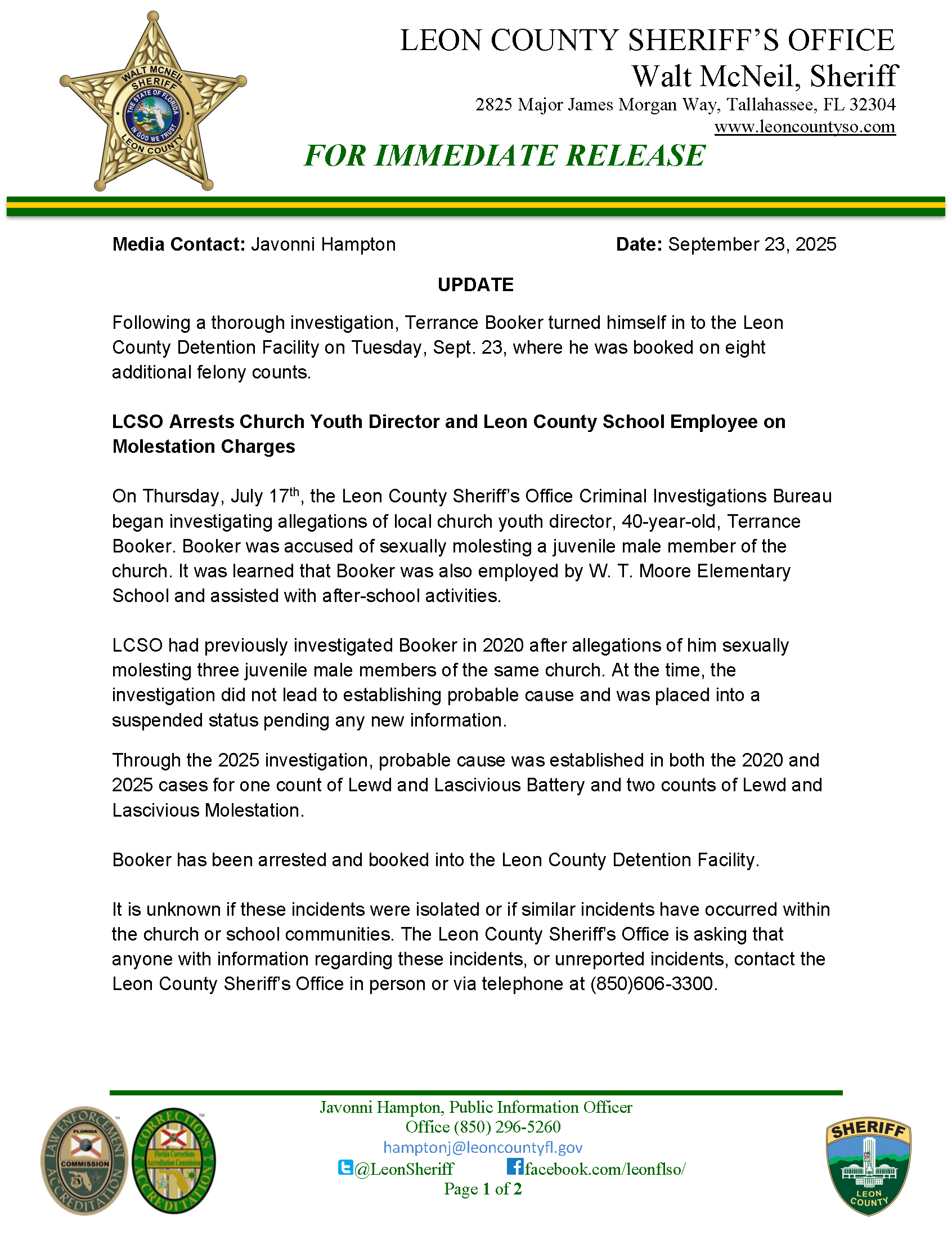 NEW CHARGES: LCSO Arrests Church Youth Director and Leon County School Employee on Molestation Charges